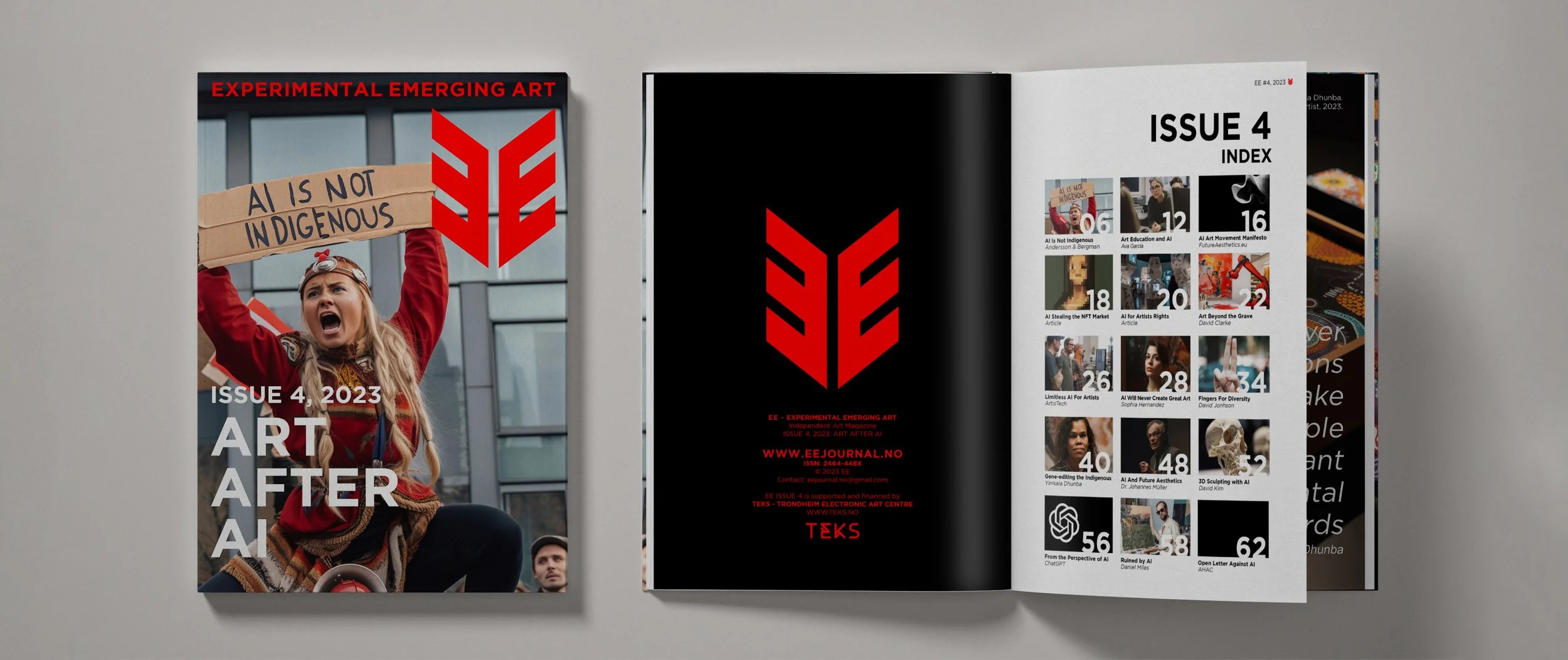 EE: Experimental Emerging Art Magazine is an independent art magazine edited by Stahl Stenslie (NO) and Zane Cerpina (NO/LV). The fourth issue “Art after AI” is supported and financed by TEKS - Trondheim Electronic Arts Centre. Published by TEKS.press.